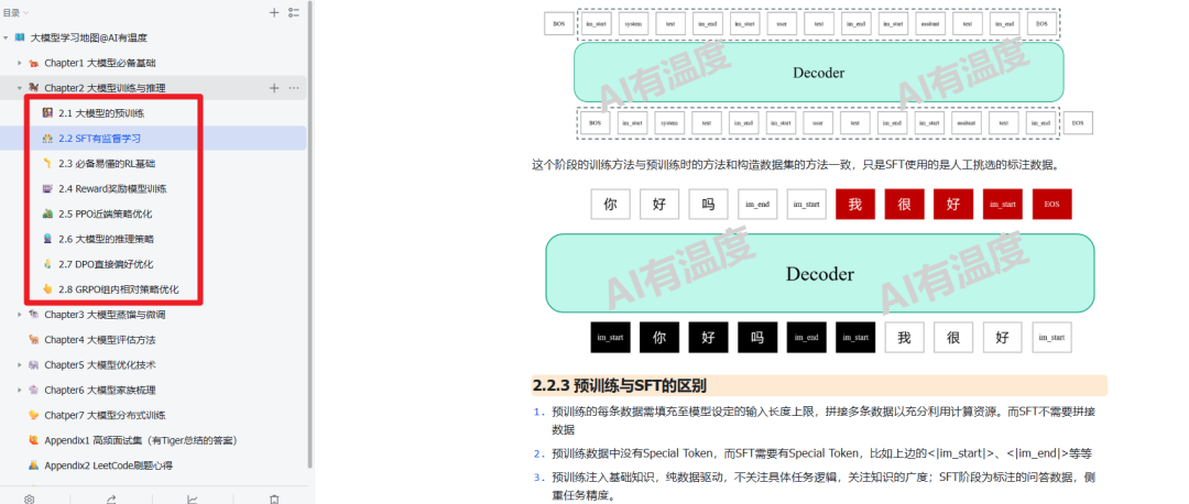在工作与学习中,我不断记录对大模型的理解,原创了不少清晰易懂的图解进行分享,广受同学们好评。但是日常分享不成体系,不易查阅。这次我花费了很多时间和精力,把大模型的学习笔记按顺序整理成了 8 章,包含了清晰的学习路径与对应的知识点详解,覆盖了从理论基础到工程实践、从模型训练到落地优化的完整知识体系。
