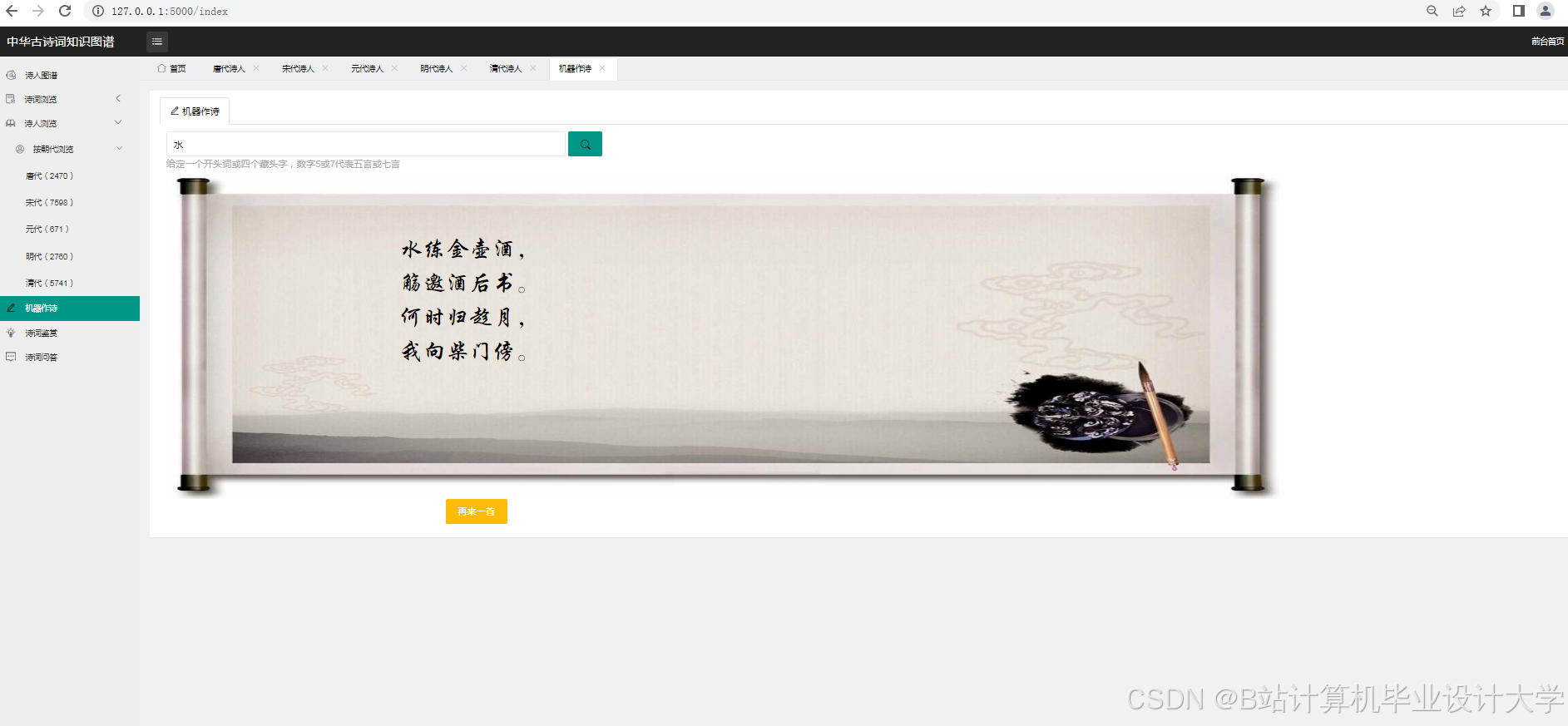 计算机毕业设计Python知识图谱中华古诗词可视化 古诗词情感分析 古诗词智能问答系统 AI大模型自动写诗 大数据毕业设计(源码+LW文档+PPT+讲解)