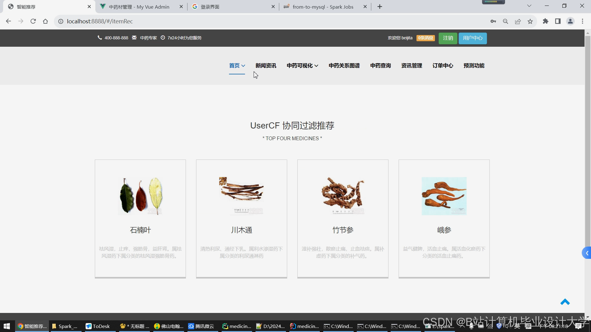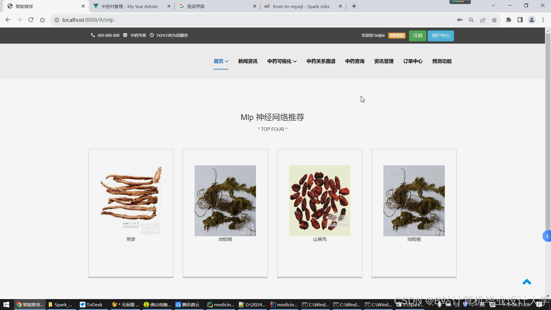 - 推荐环节:基于Spark构建的中医知识图谱,匹配对应证型的中药方剂与单味药,提供个性化推荐;