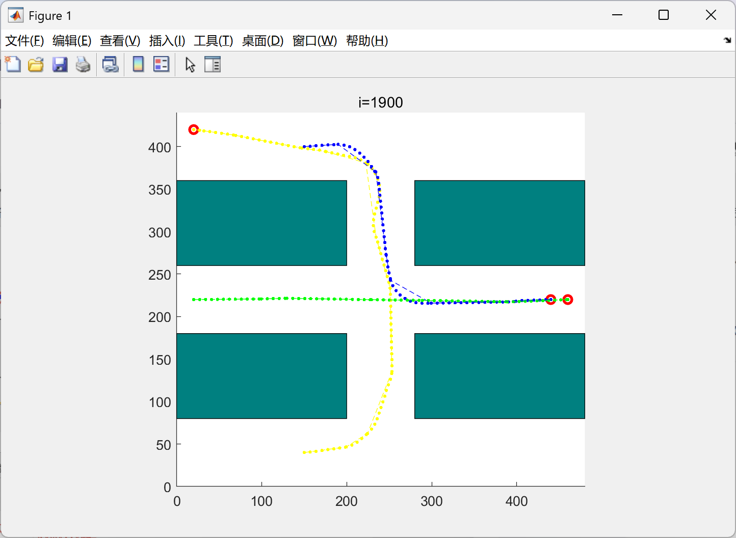 plot(path1(:,1),path1(:,2),'y--')