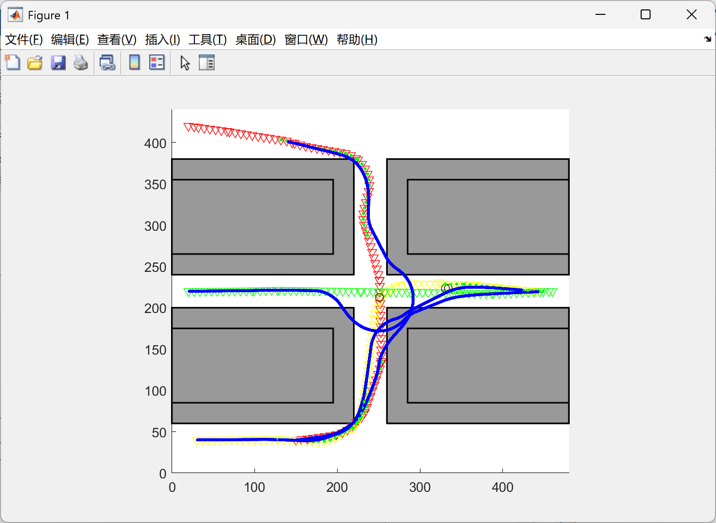 在MATLAB中构建2D仿真环境,包含以下元素: