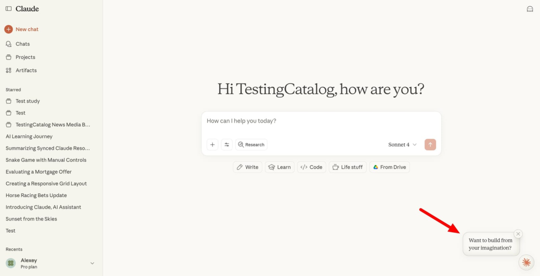 部分 Claude 用户(可能是Max档)在界面的右下角会看到一个名为 “Imagine” 的新弹窗,就像前图一样。