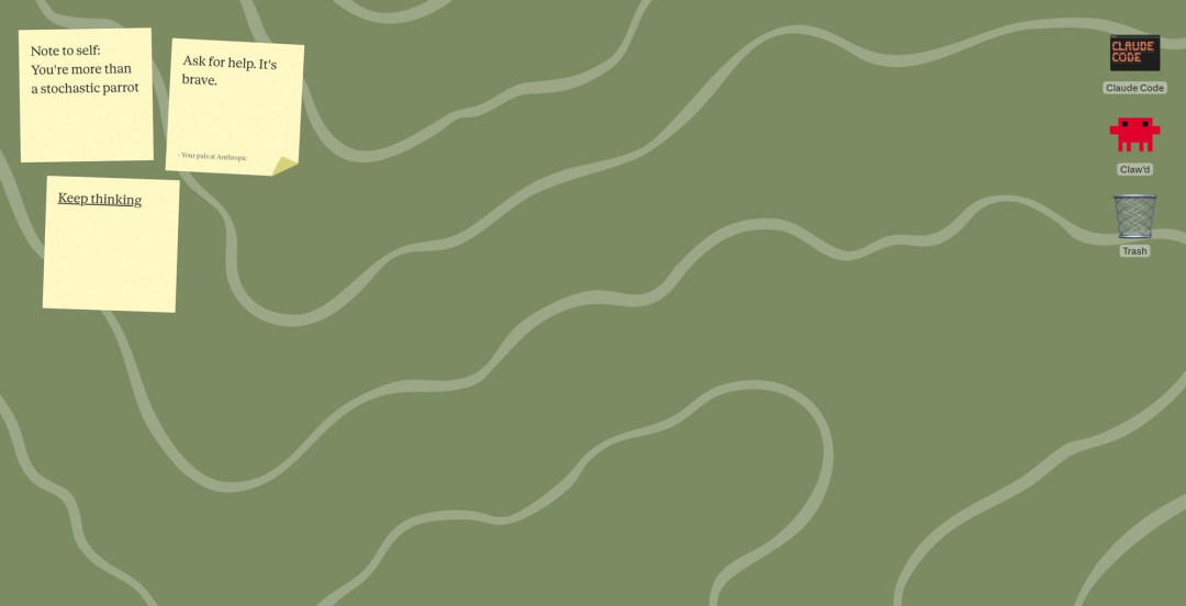 这个桌面上的图标可以链接到 Claude 内部的其他功能,比如工件游戏或云代码文档。