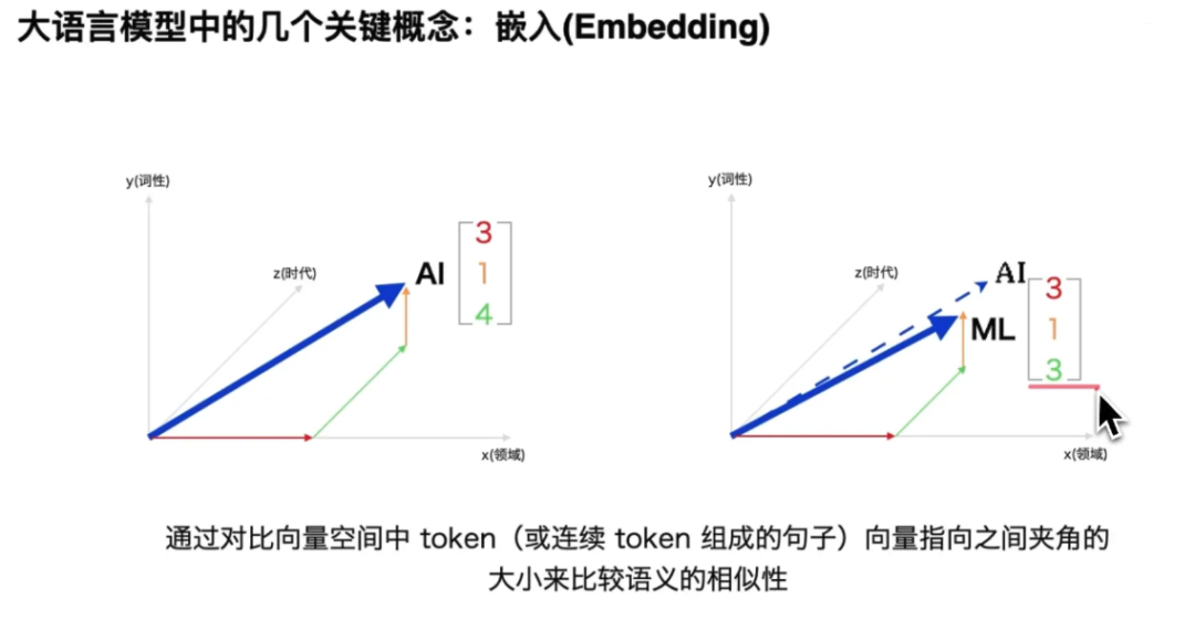 先说第一个问题,确切地说Token是以向量形式存在的。至于第二个问题为什么要做嵌入,因为只有嵌入到Token预训练时的单词表中,才能多维度对比各个Token之间的相似性(向量指向之间的夹角),为后面多层推理和向量计算(最终预测)阶段提供准确的数据支撑。