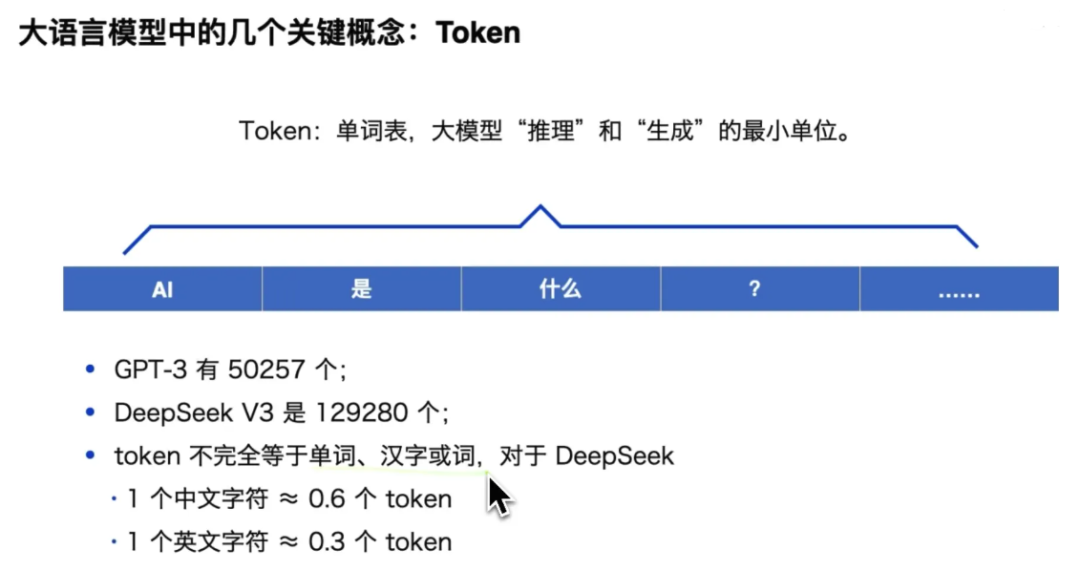 当我们把文本(Prompt)发送给大模型后,大模型先会按照模型预训练时的分词规则将我们的Prompt进行拆分,例如当我们给大模型输入"生成式AI是什么东西?"大模型 会拆分为“生成、式、AI、是什么、东西、?”6个Token。