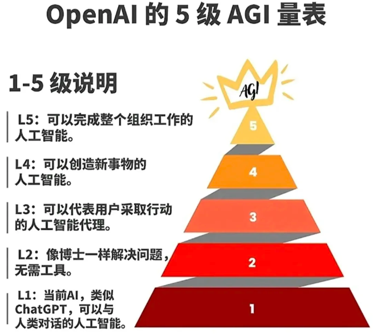 - 第 5 级:通用人工智能(AGI) —— 拥有接近或超越人类的通用智能。