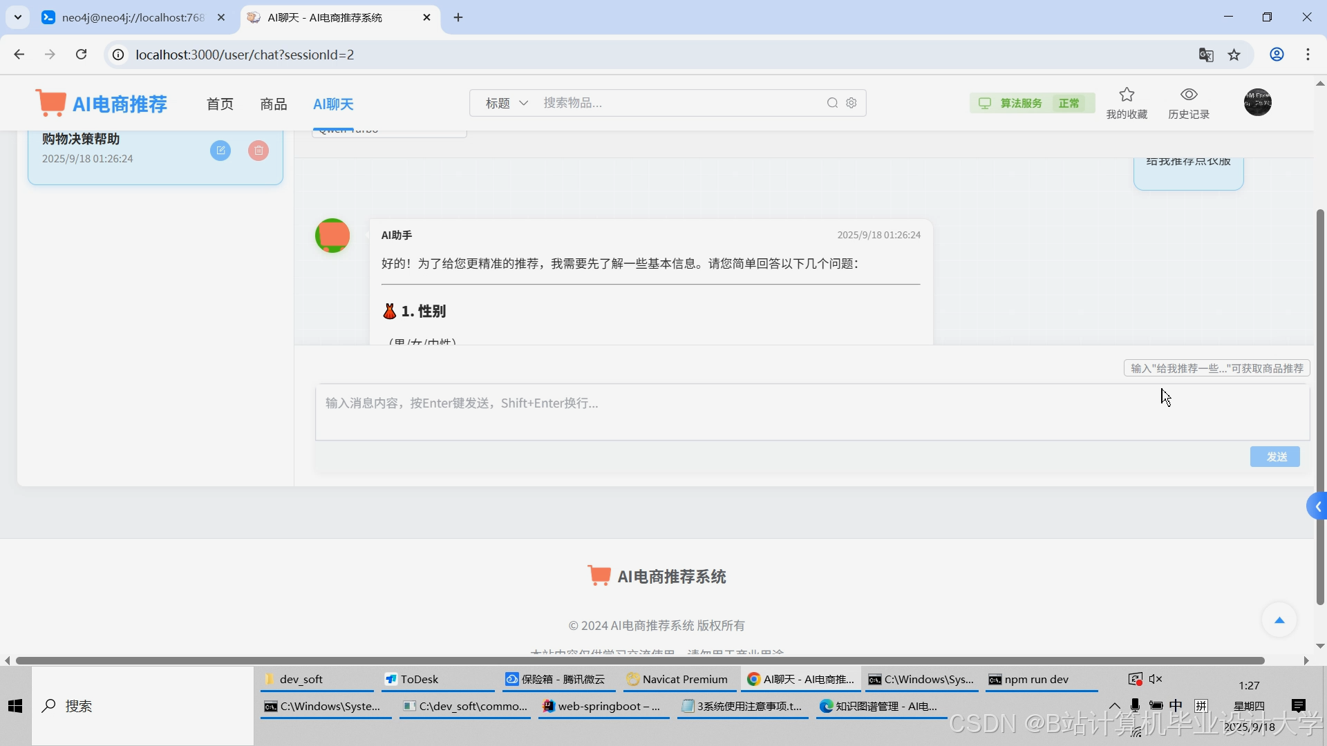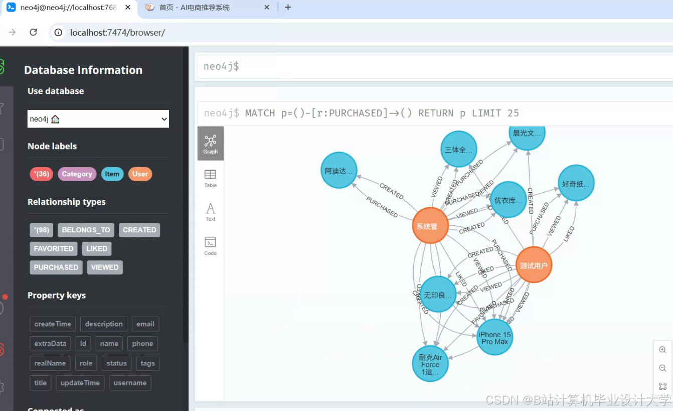 - 技术融合创新:首次将DeepSeek大模型与Neo4J知识图谱深度结合,解决传统推荐系统的语义缺失问题。