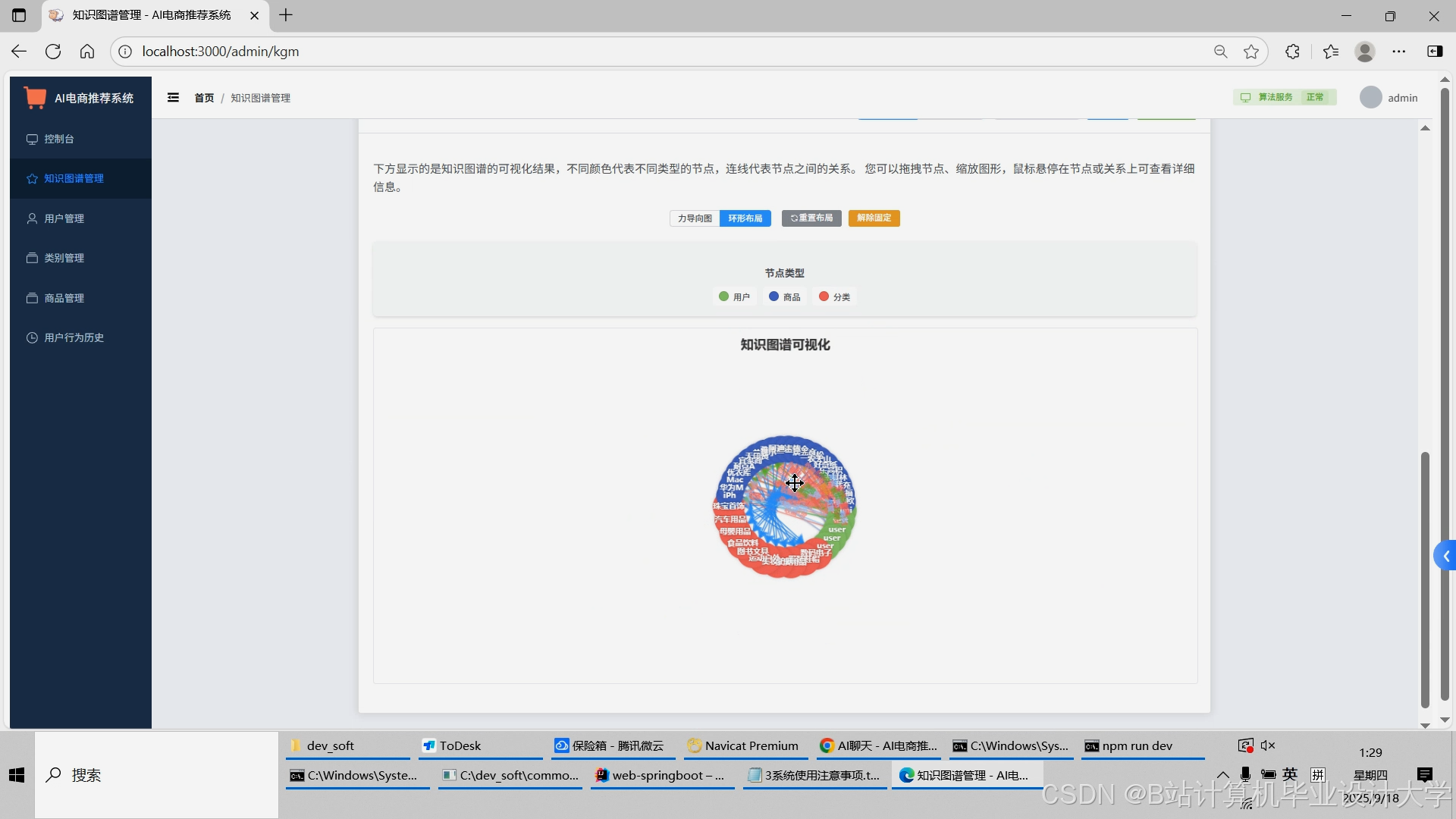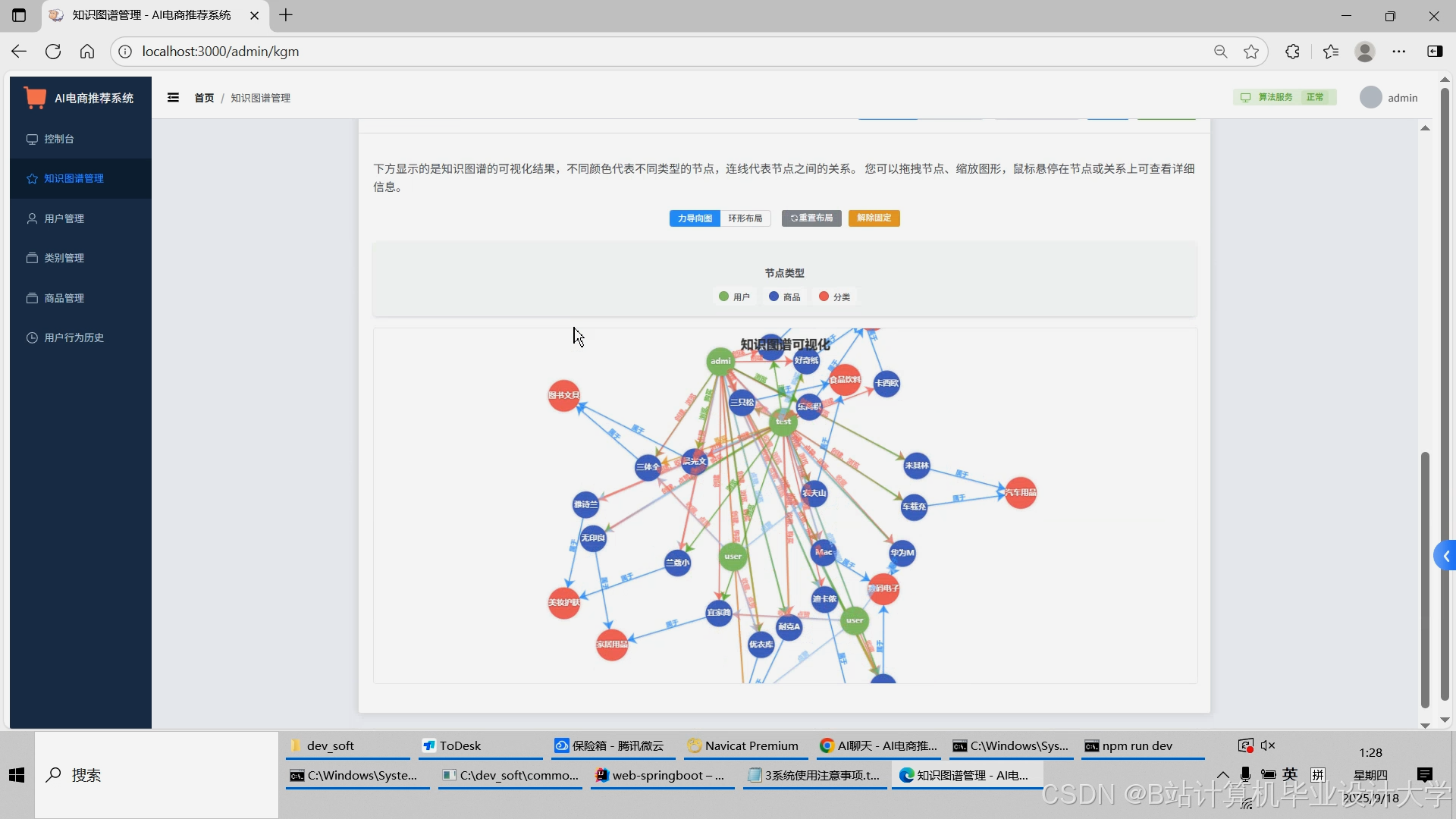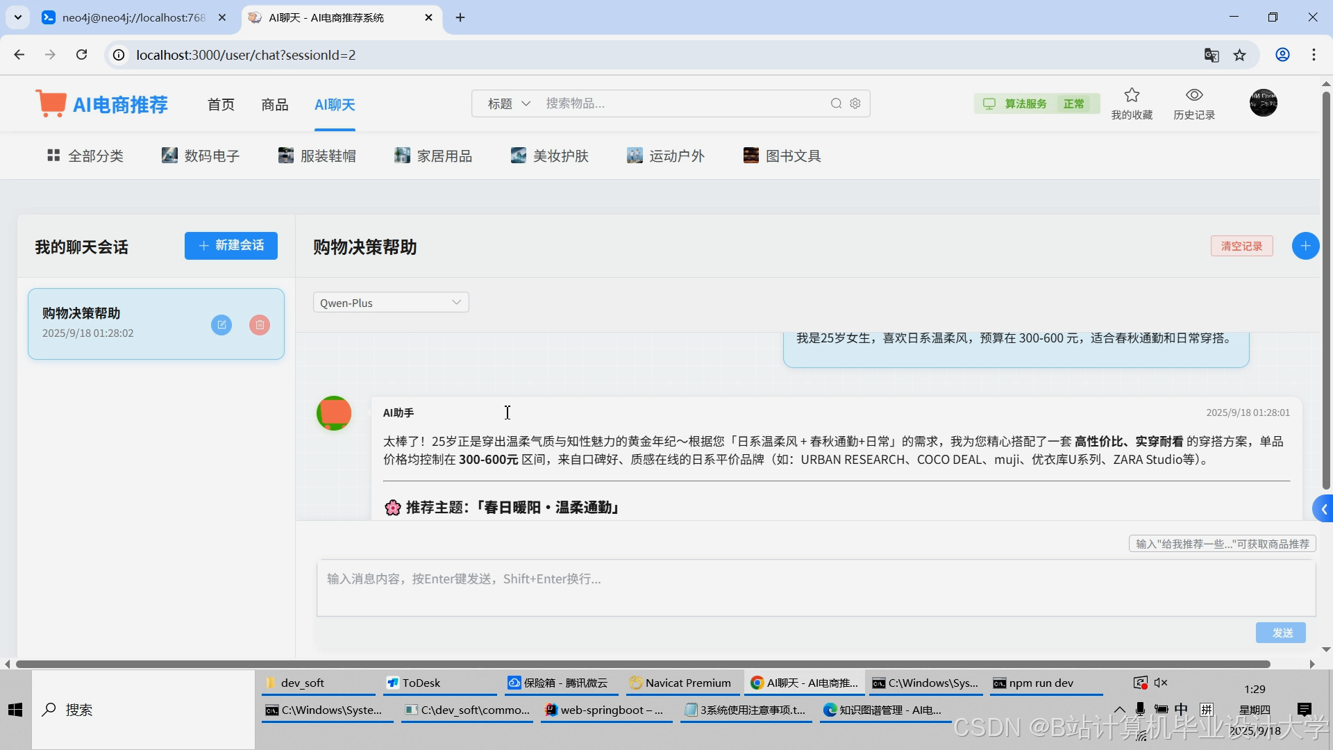 计算机毕业设计对标硕论DeepSeek大模型+知识图谱Neo4J电商商品推荐系统 SpringBoot+Vue.js