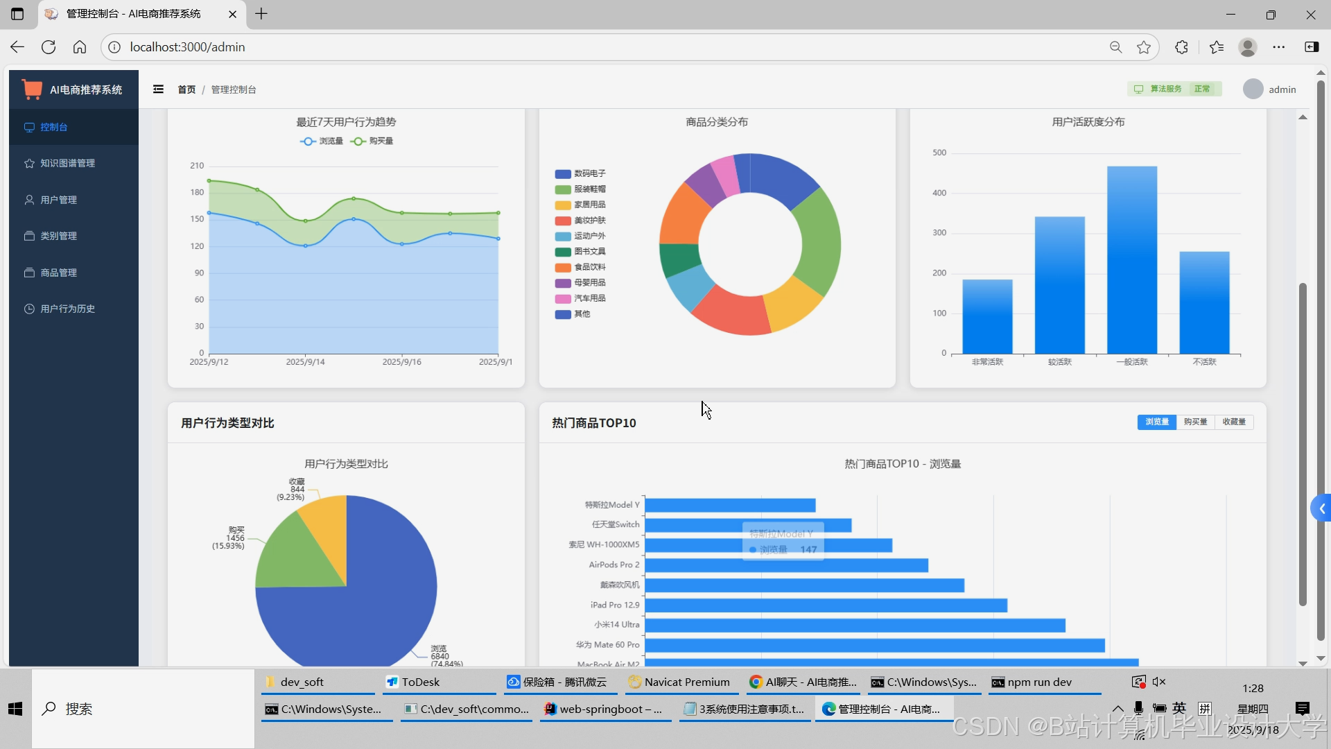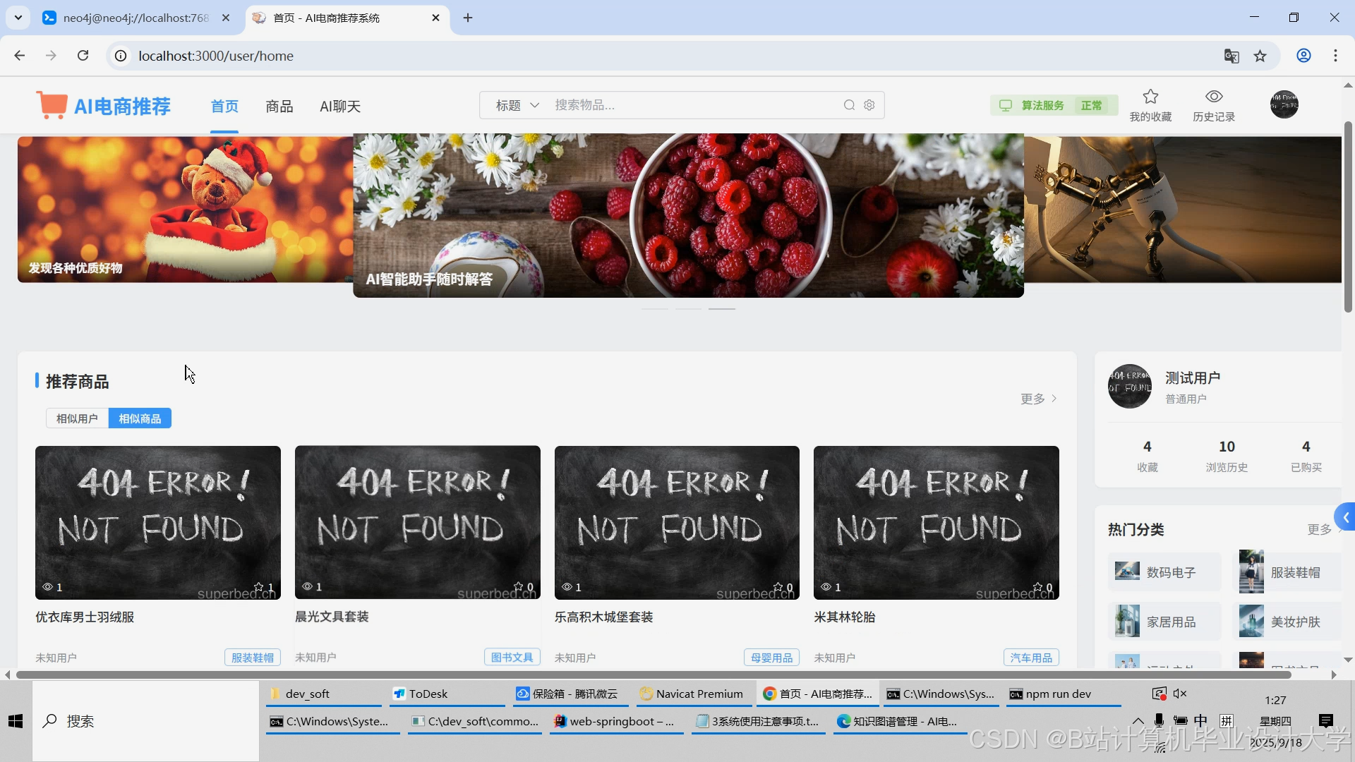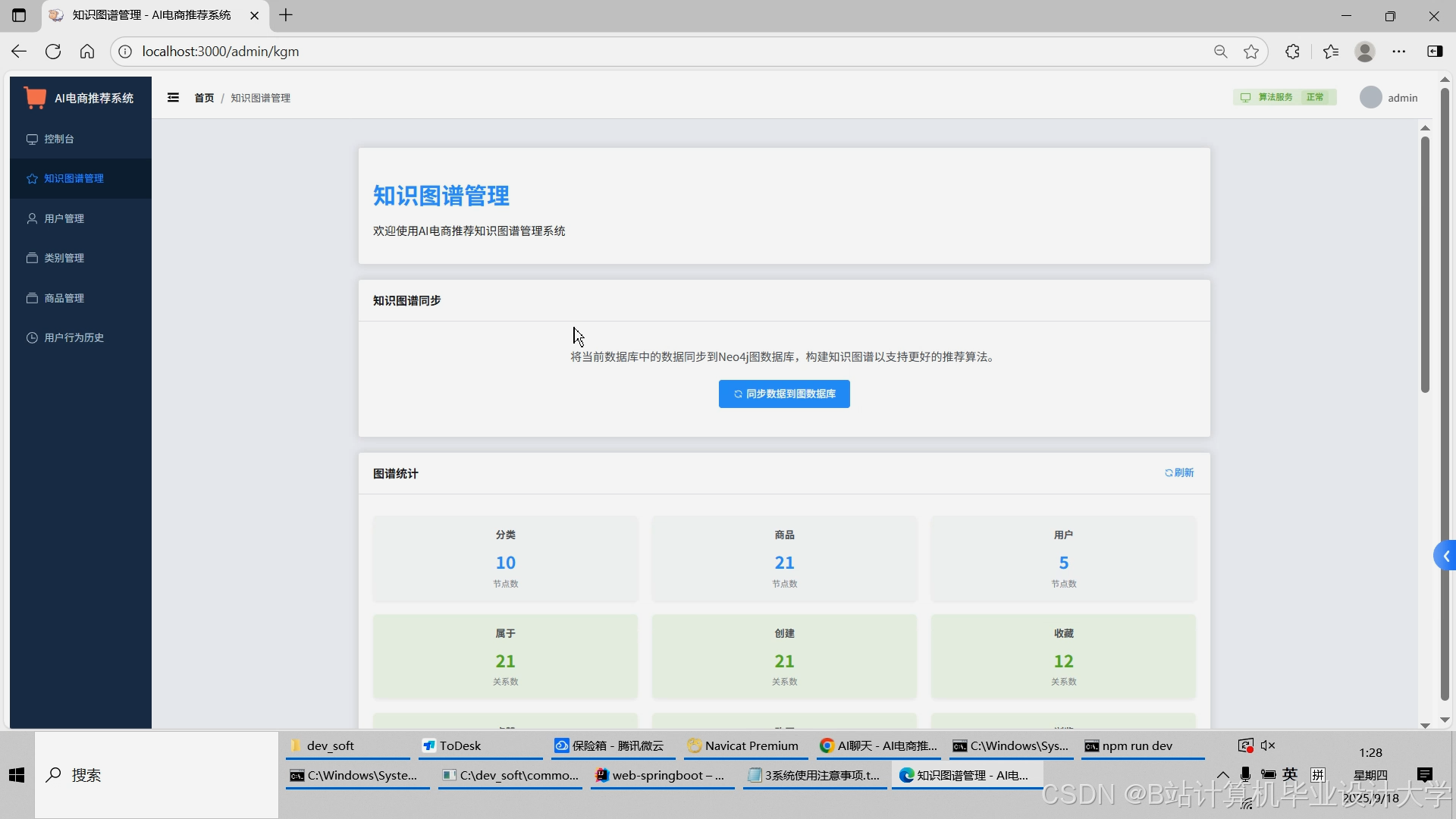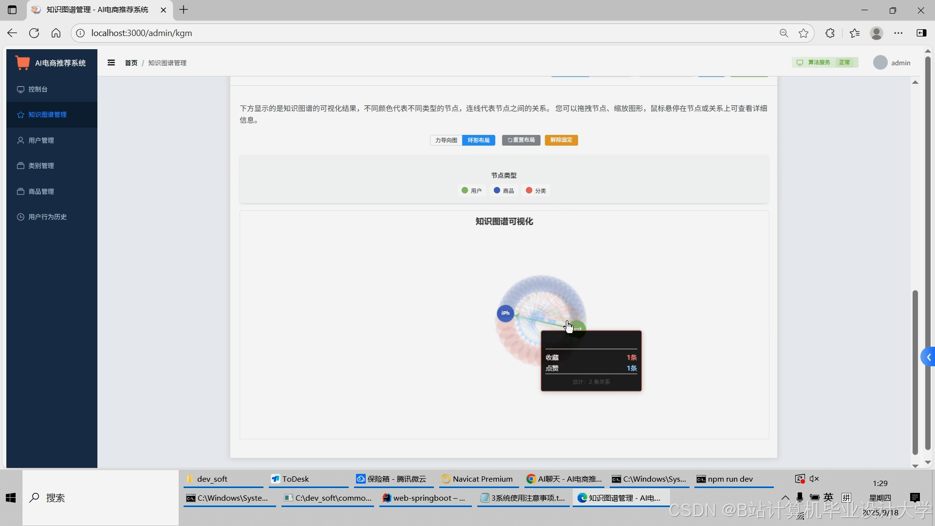 计算机毕业设计对标硕论DeepSeek大模型+知识图谱Neo4J电商商品推荐系统 SpringBoot+Vue.js