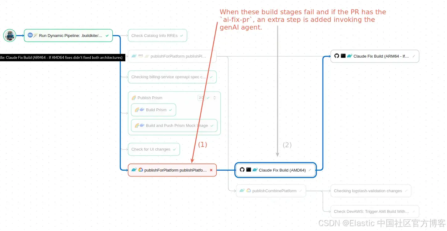 能够将具体的错误信息和失败的构建任务输入给 AI agent,包括那些依赖内部 Elastic Cloud 服务的任务。