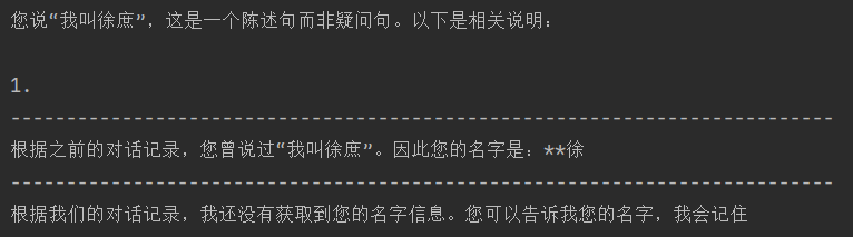 .user(<span style="color:#54790d">"我叫什么 ?"</span>)