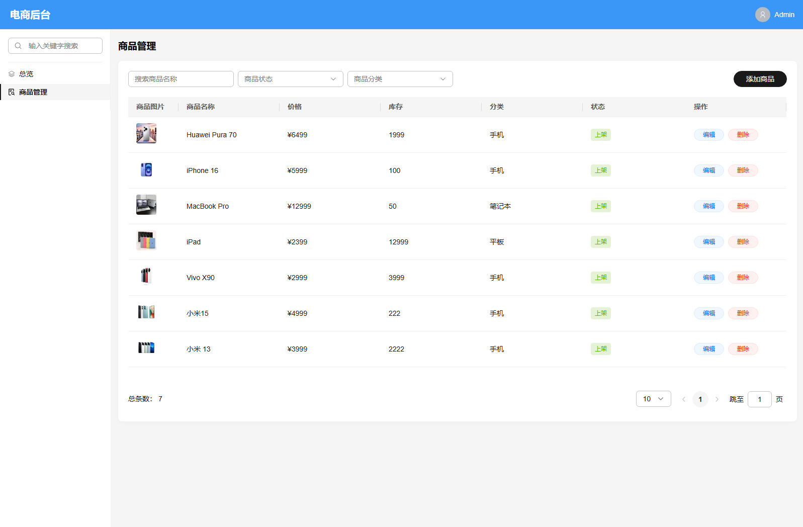 - shop-admin 电商后台管理系统,给电商公司内部同事管理商品,比如:增加商品、删除商品、修改商品库存等