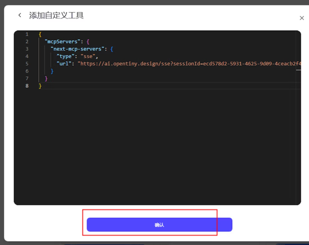 "url": "https://agent.opentiny.design/api/v1/webmcp-trial/mcp?sessionId=5f8edea7-e3ae-4852-a334-1bb6b3a1cfa9"