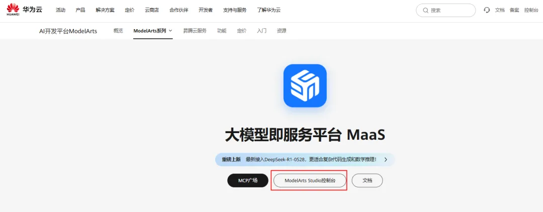 购买完成后,使用浏览器访问 ModelArts Studio 首页,点击 ModelArts Studio 控制台跳转到登录界面,按照登录界面提示登录,即可进入 ModelArts Studio 控制台。