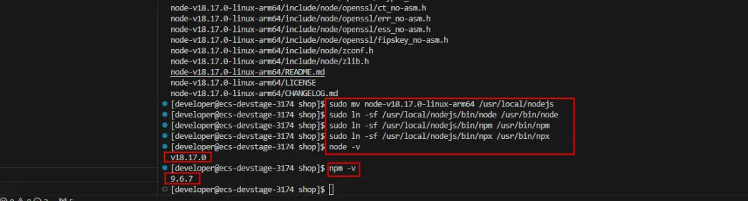 sudo mv node-v18.17.0-linux-arm64 /usr/local/nodejs