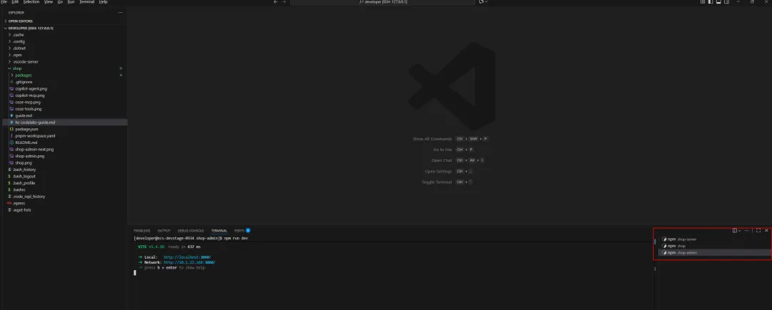 (2)继续在 shop-admin 目录下,安装 NEXT Remoter。