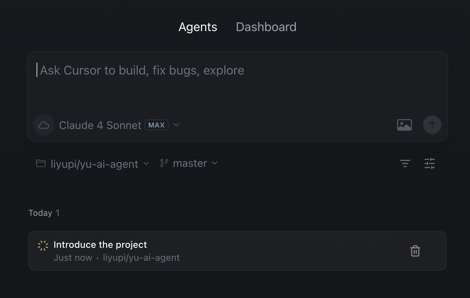 之前我们是在自己的电脑上运行 Cursor、调用 AI、执行工具等;有了 Background Agent 远程编码代理,相当于 Cursor 给你提供了云服务器,在别人的电脑上帮助你完成发给 AI 的任务。相比于自己电脑运行,更节省资源,而且软件退了、电脑关了任务也能正常执行。