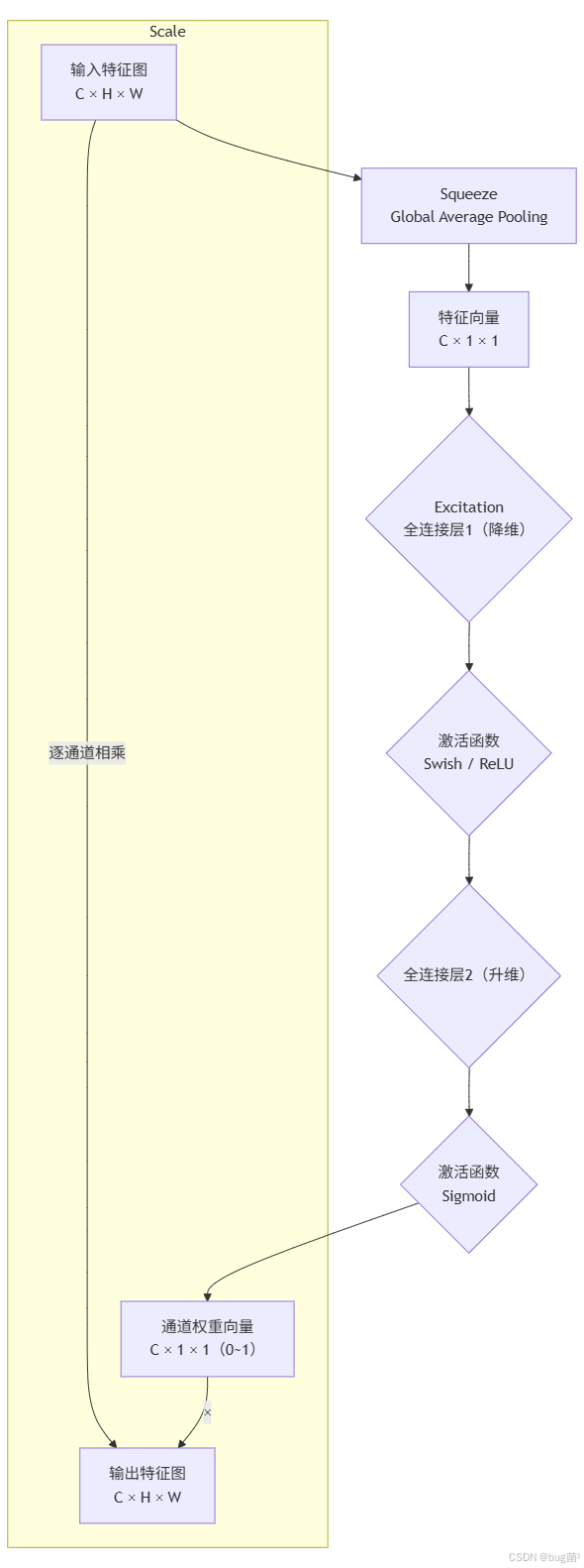 SE模块就像给每个通道分配了一个“注意力分数”,分数高的通道被认为是重要的,其信息会被放大;分数低的通道则被认为是次要的,其信息会被削弱。