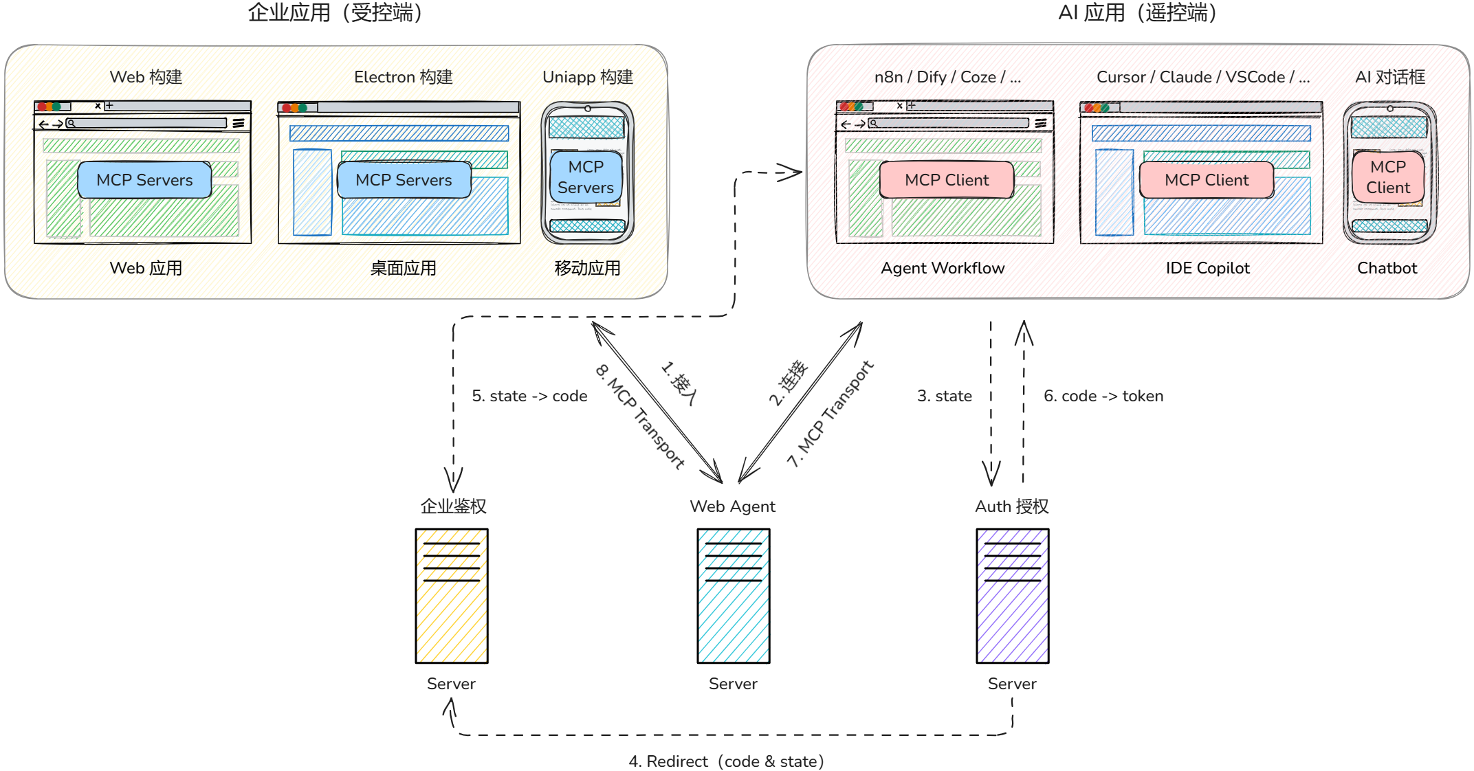 - WebAgent: 连接 Agent 智能体与企业应用内置的 MCP 服务的手臂。