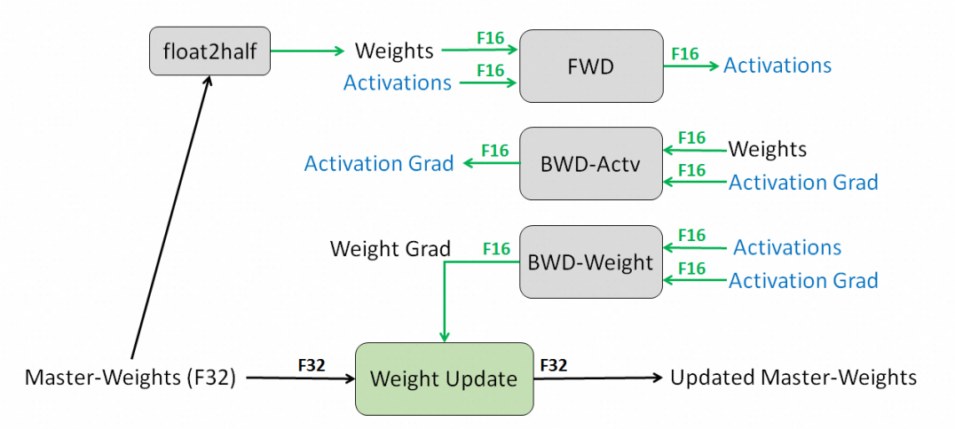 混合精度训练:使用FP16进行训练,减少内存消耗并提高训练速度。