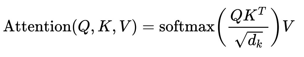 \text{Attention}(Q, K, V) = \text{softmax}\left(\frac{QK^T}{\sqrt{d_k}}\right) V