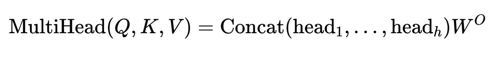\text{MultiHead}(Q,K,V) = \text{Concat}(\text{head}_1,\ldots,\text{head}_h)W^O