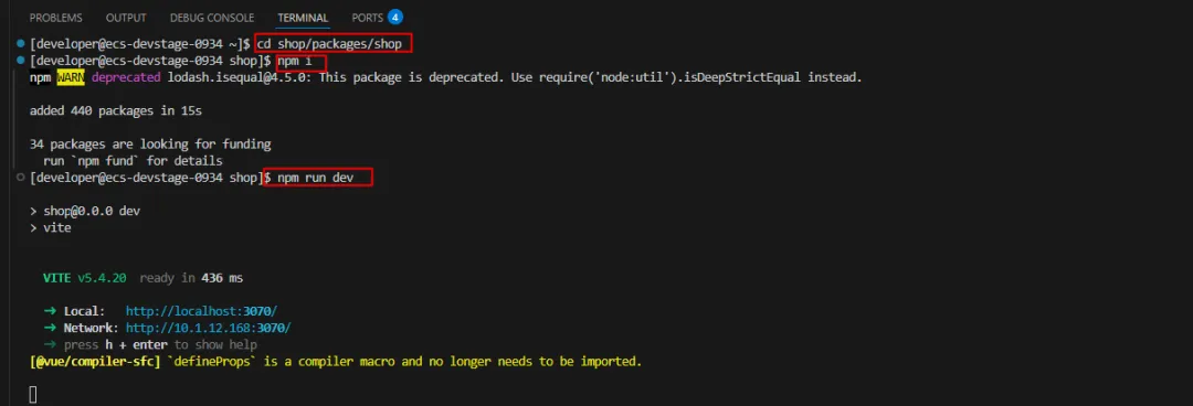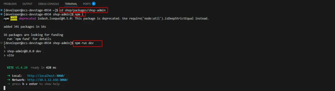 (3)启动电商商城后台管理系统 继续重新打开一个终端窗口,依次执行如下命令,启动电商后台管理系统。