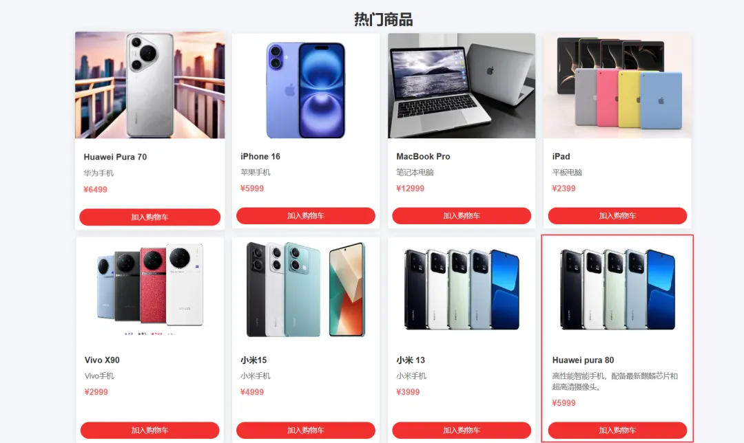 前端页面也可以刷新出来上架的商品了。如下图所示: