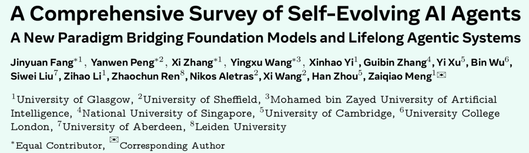 - 论文:A Comprehensive Survey of Self-Evolving AI Agents: A New Paradigm Bridging Foundation Models and Lifelong Agentic Systems