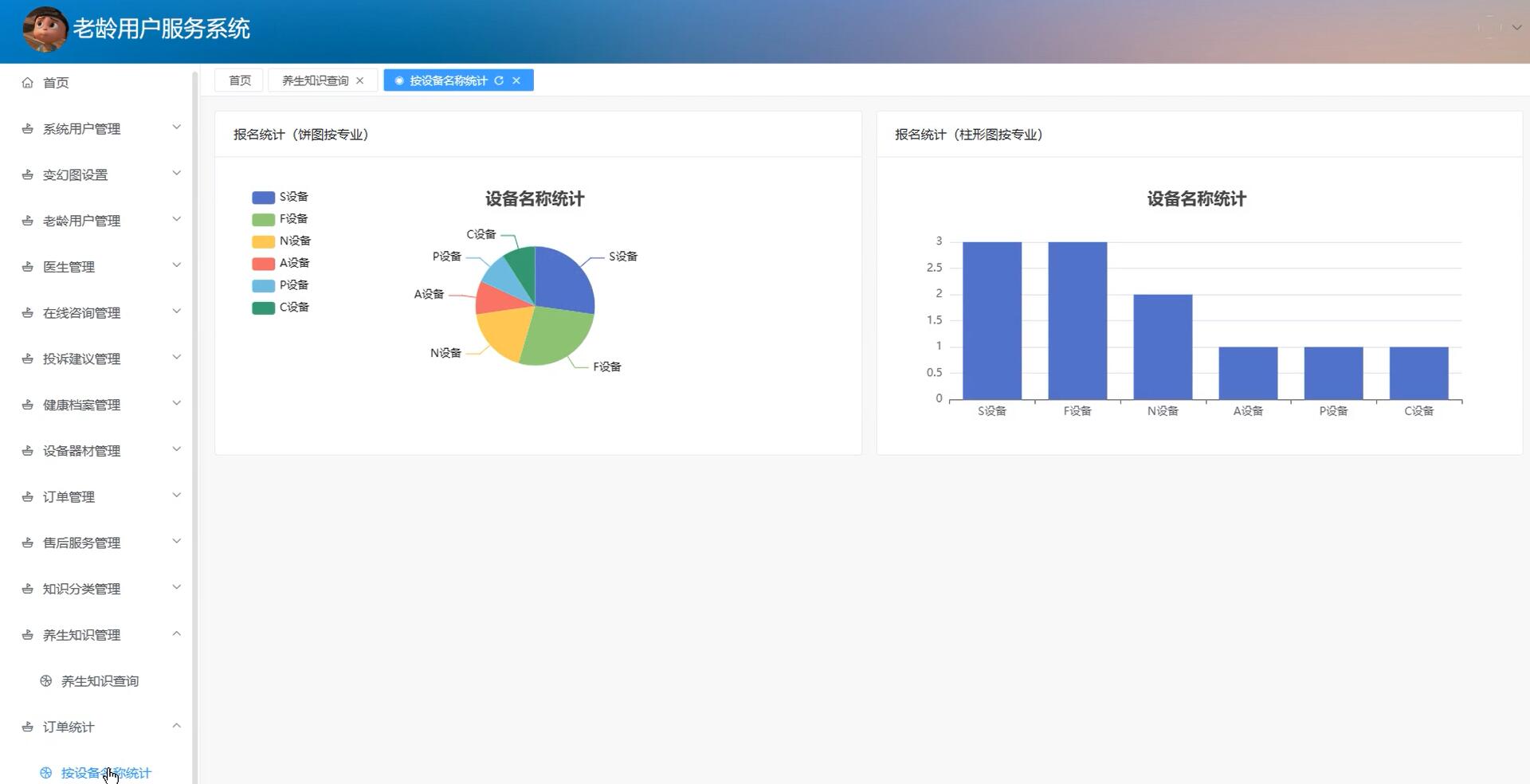 设备器材管理:对与老龄用户服务相关的设备和器材进行管理,包括设备信息录入、维护记录、使用情况跟踪等。