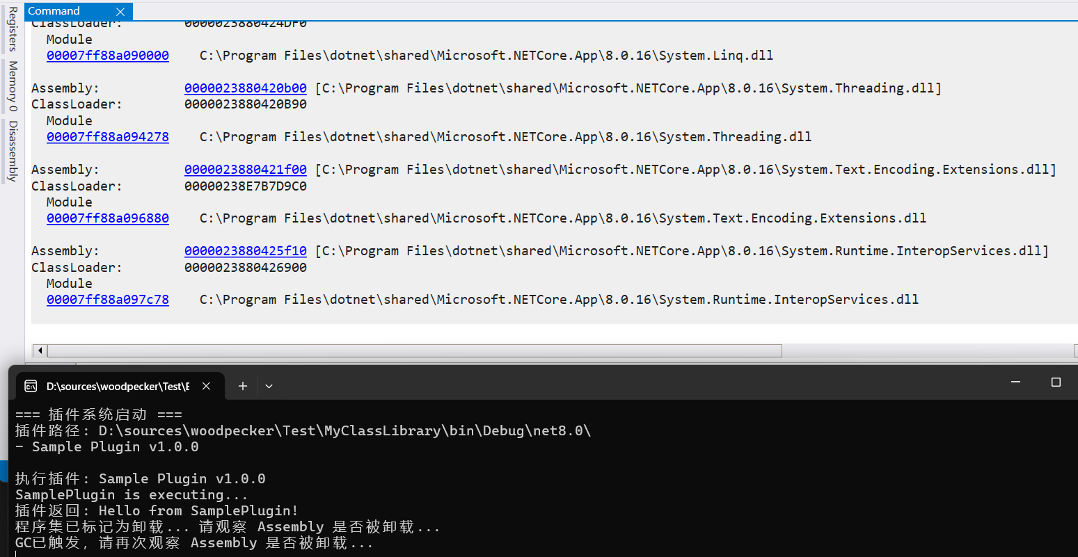 Console.WriteLine("GC已触发,请再次观察 Assembly 是否被卸载...");