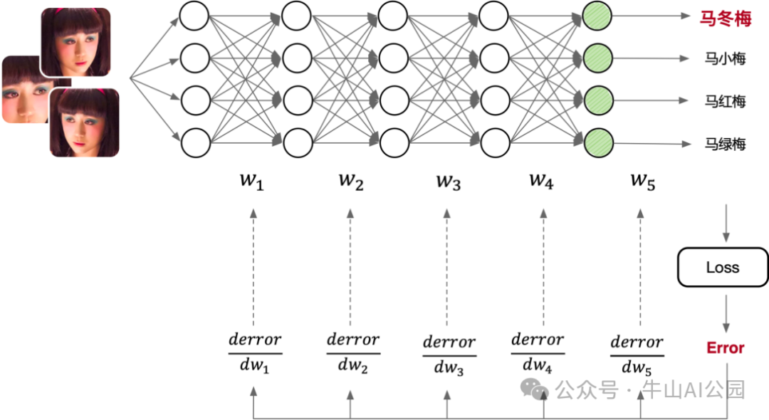 4、更新权重和偏置(Gradient Descent)一旦计算出了每个参数的梯度,就可以通过梯度下降算法来更新权重和偏置。梯度下降的基本思想是:如果损失函数的梯度(即误差)指向某个方向,我们就应该沿着相反的方向调整参数,以减小损失。