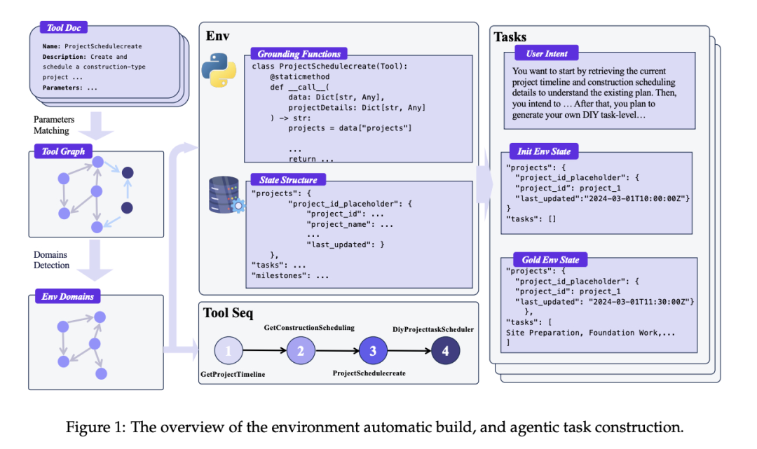 思路是:自动构建大量真实的工具使用沙盒,然后在这些环境中训练agent。