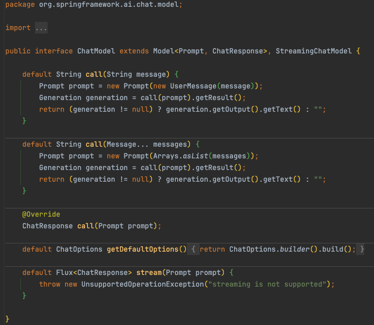 考虑到大模型对话是热点场景, spring-ai 针对性的提供了会话接口抽象。