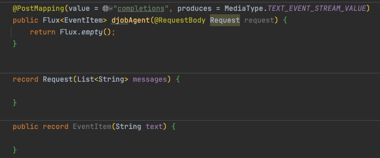 { "stream": false, // 是否是流式输出(要不要SSE) "model": "deepseek-chat", //选用的哪个模型 "messages": [ // 历史对话消息,因为大模型无状态,所以按场景提供一定数量的历史消息 { "content": "You are a helpful assistant", "role": "system" }, { "content": "Hi", //消息内容 "role": "user" //消息类型 } ], "tools": null, //外部函数列表,【函数调用】能力在 API 层面的支持 "frequency_penalty": 0, //无关紧要的模型行为控制参数 "presence_penalty": 0, //无关紧要的模型行为控制参数 "temperature": 1, //无关紧要的模型行为控制参数 "top_p": 1, //无关紧要的模型行为控制参数 "logprobs": false, //无关紧要的模型行为控制参数 "top_logprobs": null //无关紧要的模型行为控制参数}