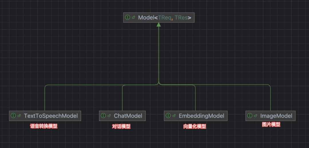 核心的API实体是 Model ,是一个带泛型的纯函数,提供了对大模型能力的顶层抽象: