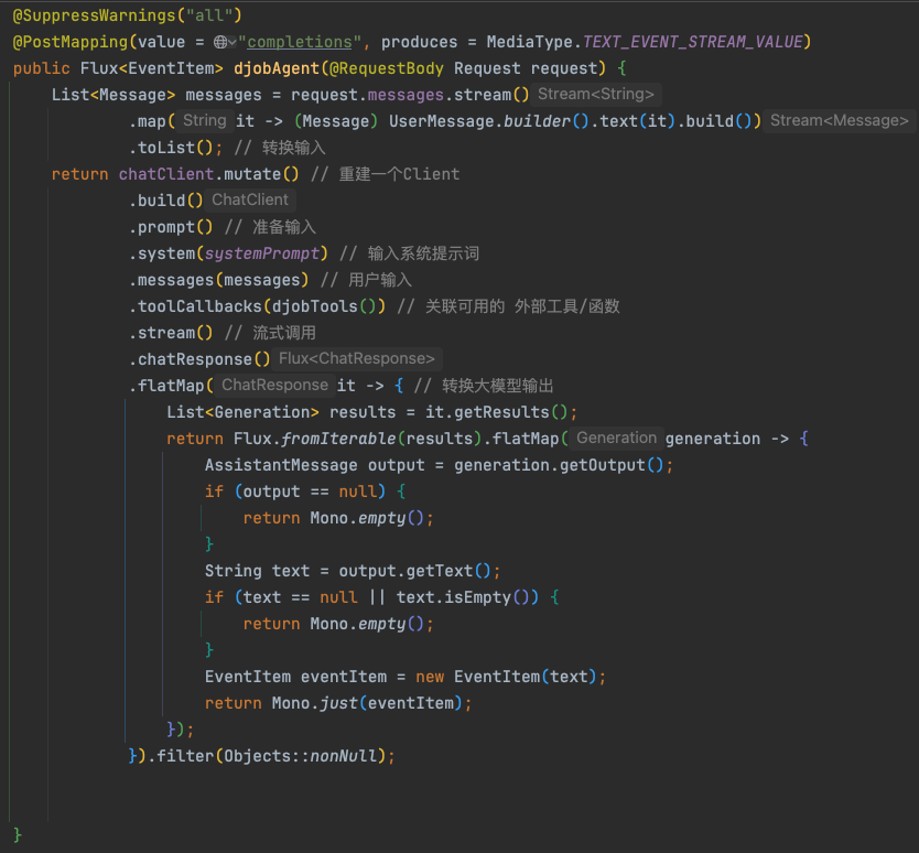 在大模型API交互模式、业务集成模式经百家争鸣现已趋于稳定的背景下,Spring作为Java生态里的OSS巨头也下场为LLM提供生态支持,于近期释出 spring-ai 正式版。