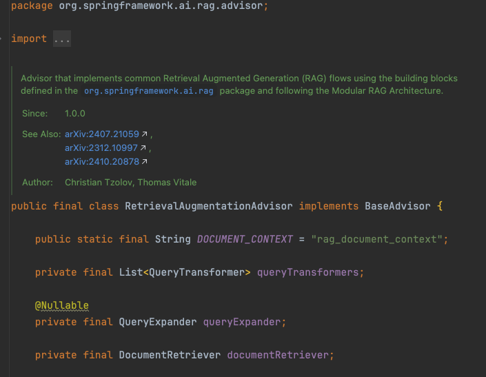org.springframework.ai.rag.advisor.RetrievalAugmentationAdvisor