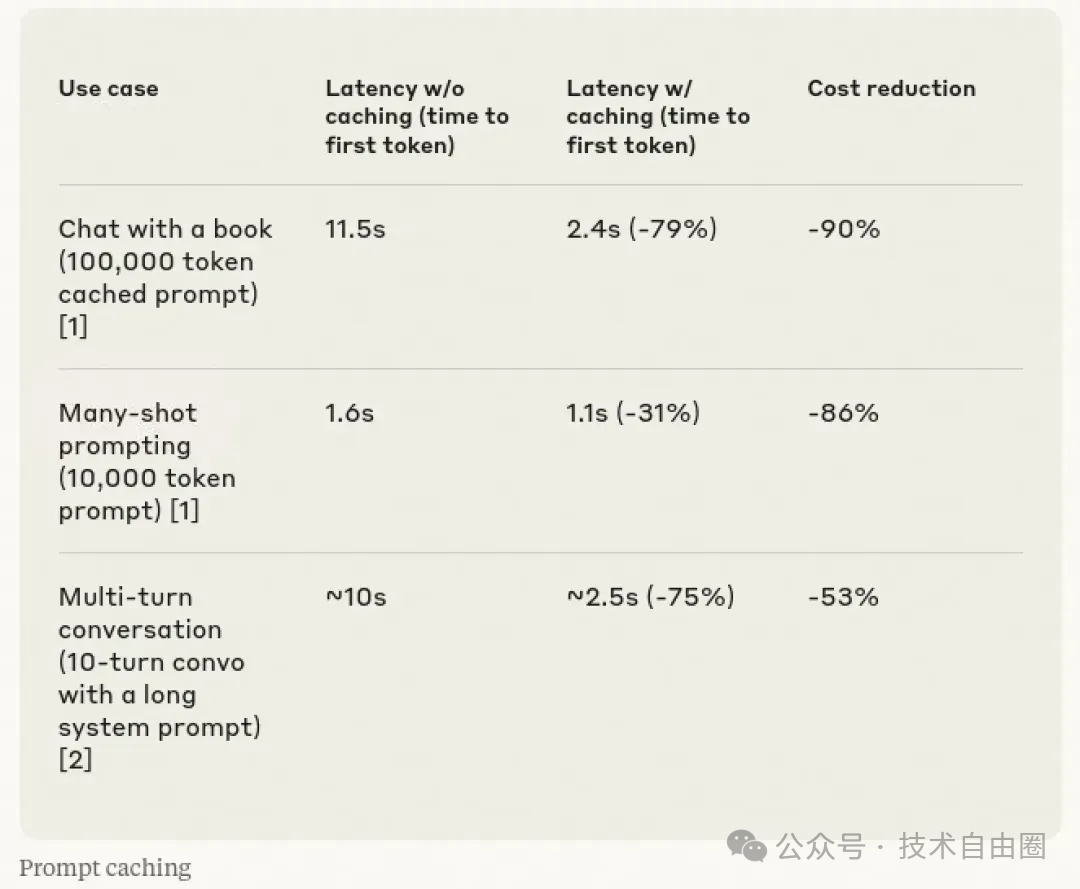 Anthropic 在 2024 年推出的 Model API 中就引入了 Prompt Cache 技术,并展示了实际效果:延迟明显降低,资源消耗也大幅减少。