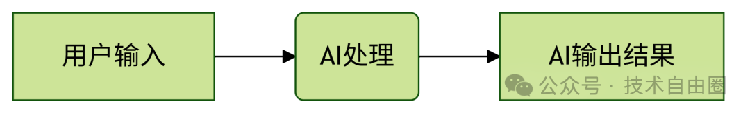 这个流程图展示了最简单的AI应用交互逻辑:用户输入 → AI处理 → 输出结果。