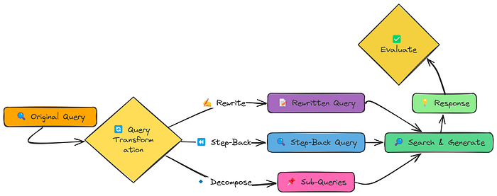 **查询转换(Query Transformation)**技术为我们提供了一个解决方案。它通过三种不同的方法来改进查询:查询重写(Query Rewriting)、后退提示(Step-back Prompting)和子查询分解(Sub-query Decomposition)。