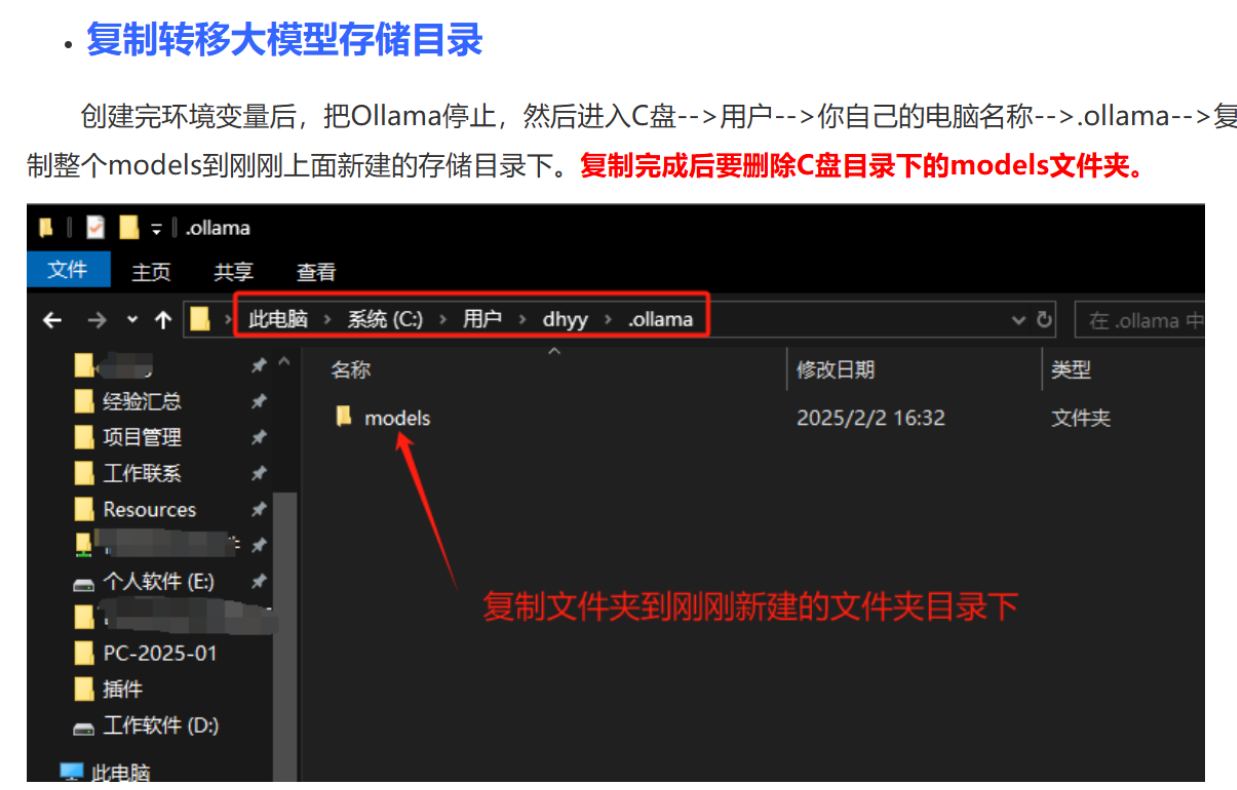 表示下载的大模型都放到这个目录,防止大模型拉取下来都放在C盘占用C盘空间