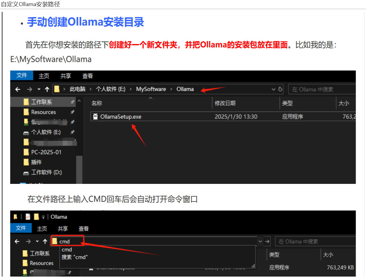 为了防止大模型下载到c盘的用户目录,要按照项目步骤把model文件夹剪切到想要下载大模型的目录,我这里是C:/develop/ollama