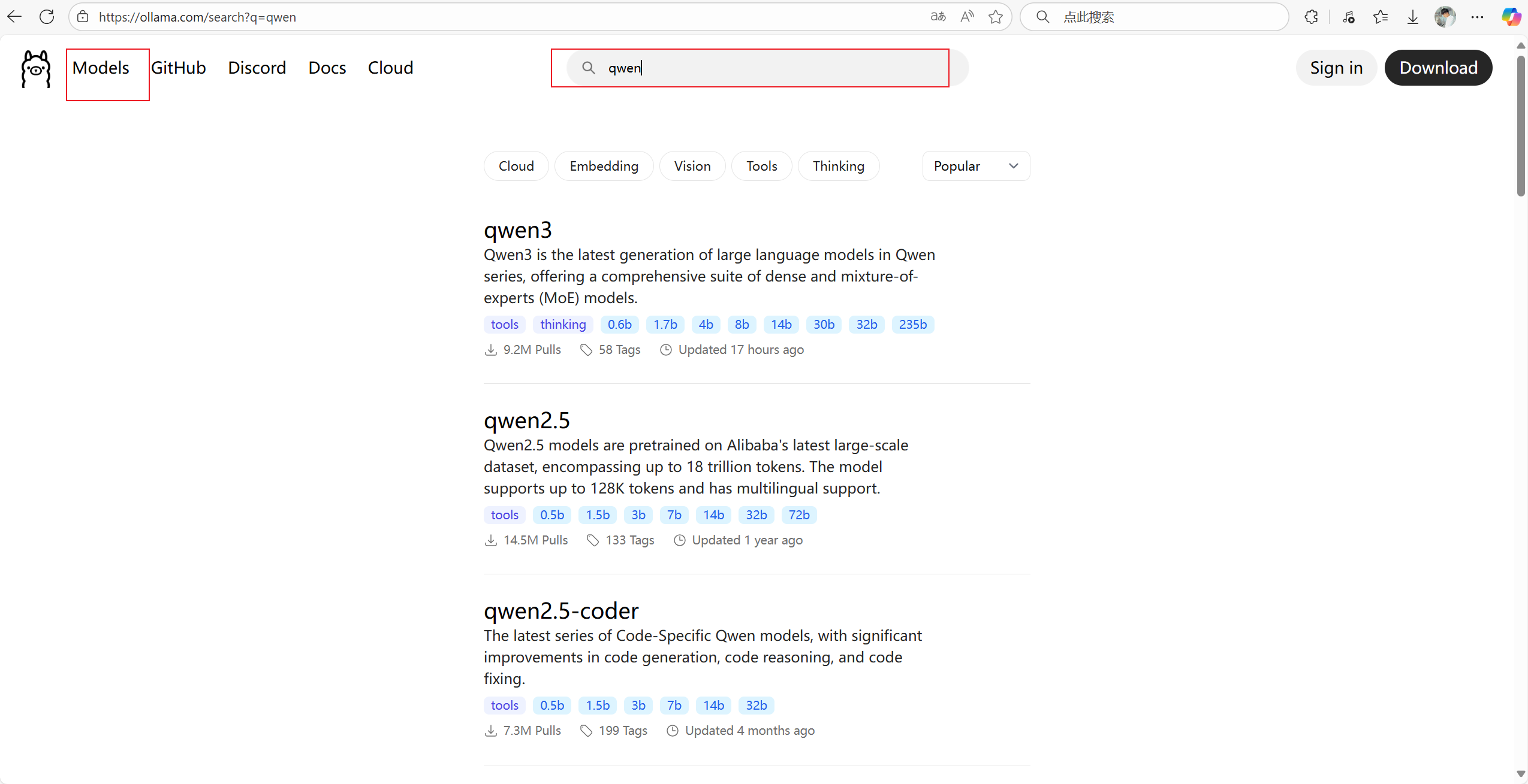 Docker Hub玩镜像,而Ollama Hub可以部署各种各样的大模型,可以把各种大模型下载到本地