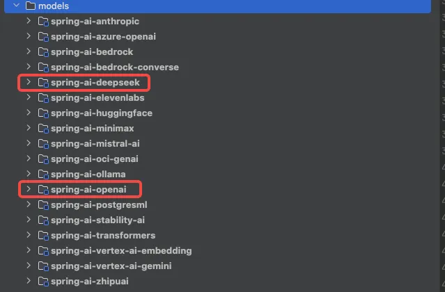 到了这一步,我们开始探讨 Java 代码,首先我们需要熟悉下 spring-ai 的整套代码架构,一步一步来,以整体到到细节的节奏进行讨论。