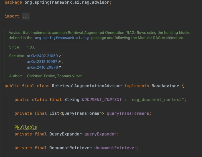 org.springframework.ai.rag.advisor.RetrievalAugmentationAdvisor