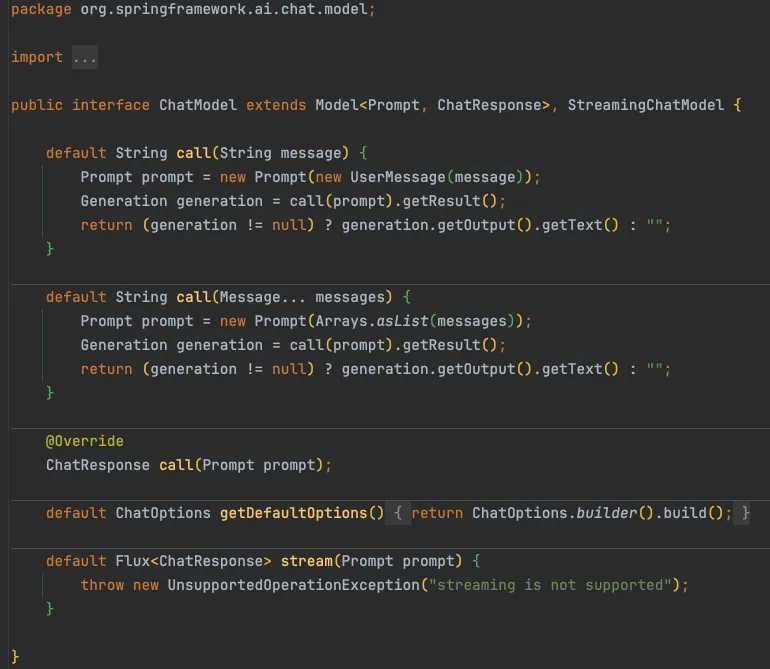 考虑到大模型对话是热点场景, spring-ai 针对性的提供了会话接口抽象。
