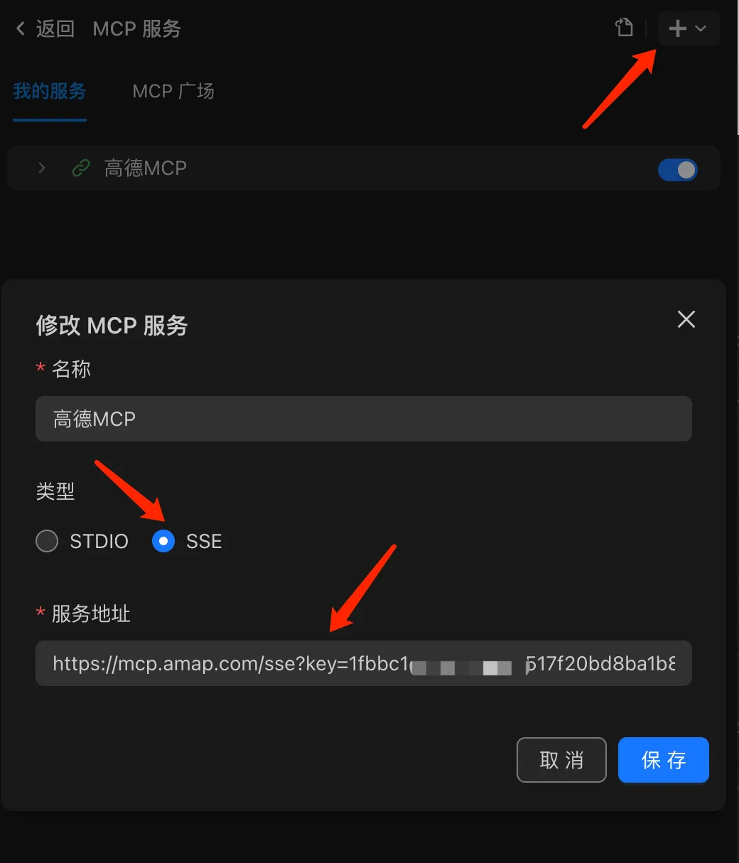 "url": "https://mcp.amap.com/sse?key=您在高德官网上申请的key"
