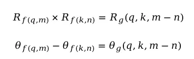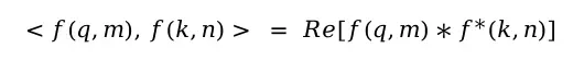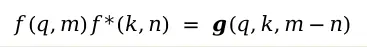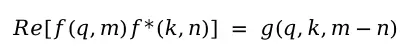 把实部Re拿掉,f(q,m)和f(k,n)共轭相乘的结果是一个复数,设其结果为g,该复数也必定和q,k,m-n相关,令下式为公式一