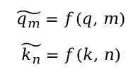 有了前文的铺垫,作者的出发点是想通过一种绝对位置编码的方式,让Attention能够自动感知到相对位置,而不需要对Attention的结构进行改造。由于Attention是对两个位置的token的向量进行运算,因此只需要在Attention之前,对Query和Key向量进行绝对位置编码改造即可,跟Value没有关系,我们设一个m位置的token1,它的Query为q,n位置的token2,它的Key为k,改造函数为f,则经过注入位置信息改造之后的新向量为